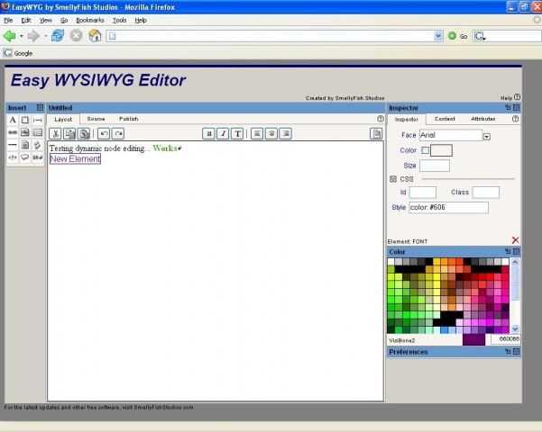 5/16/2005: Web site is up and functional. We are currently looking for developers, so if you or anyone you know would like to help develop EasyWYG, email me at SmellyFishStudios@yahoo.com